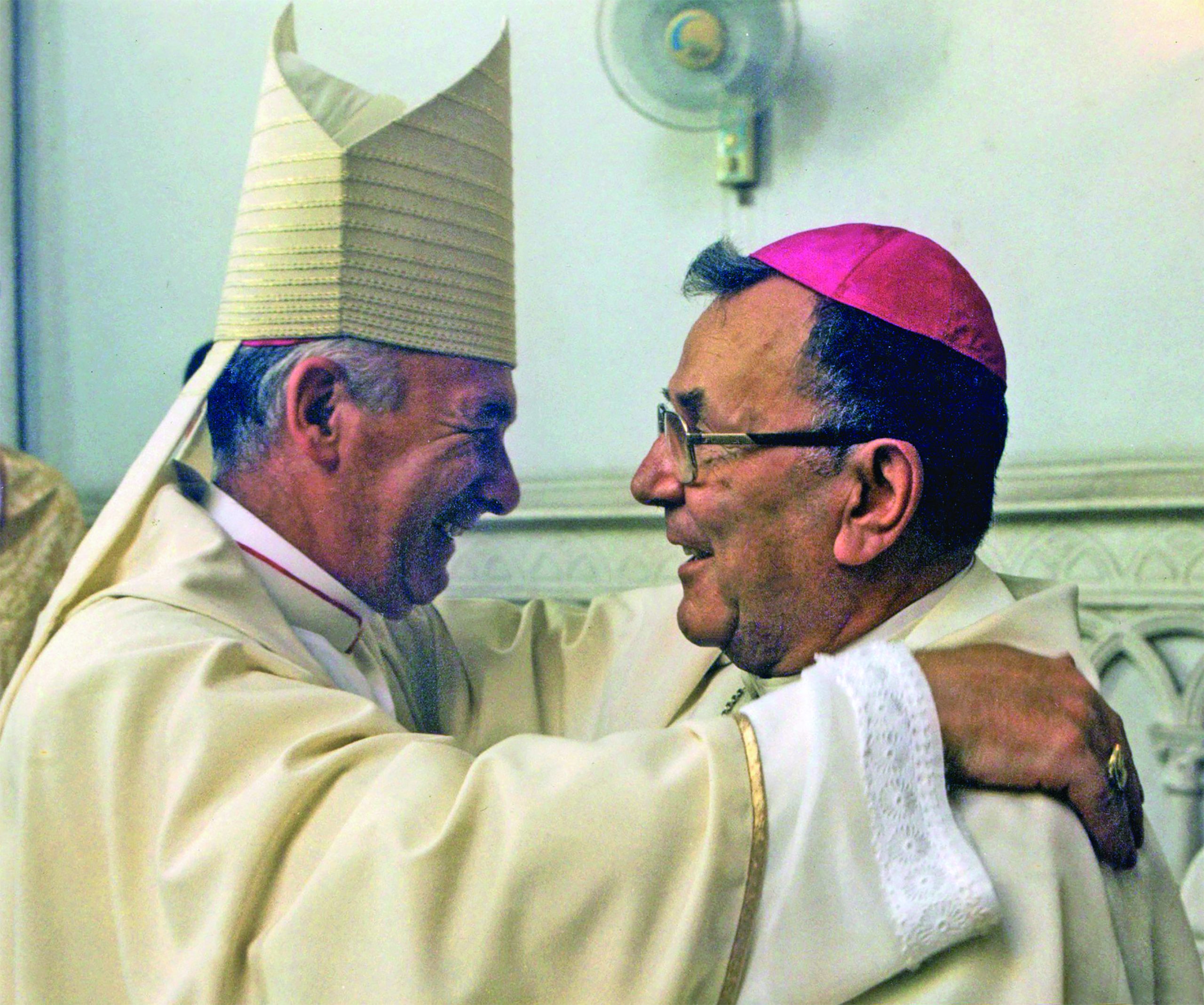 El abrazo fraterno de dos hermanos que se quisieron siempre bajo el amparo de nuestra Santa Iglesia y grandes amigos y servidores de nuestra casa, Radio La Voz de María y de la revista ¡Salve Regina! Mons. Antonio Arregui Yarza (+) y Mons. Hugolino Cerasuolo Stacey (+).